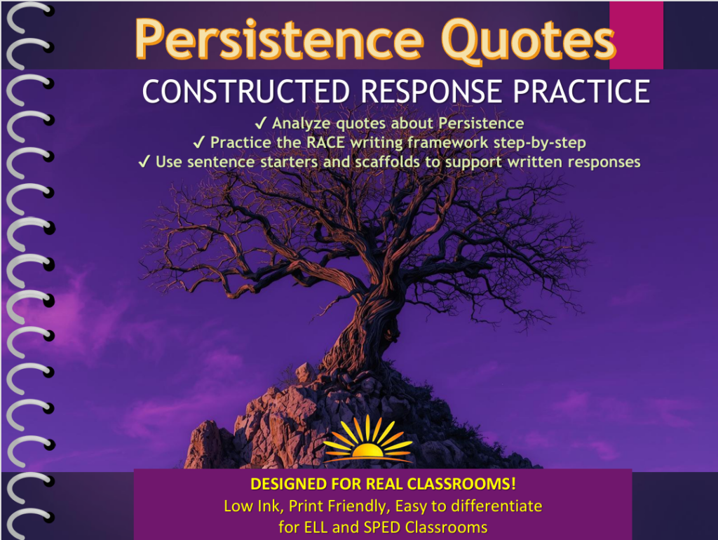 In this resource, each persistence quote comes with a clear, practical explanation. This ensures that even our students with the most significant cognitive challenges can access the meaning of the text before they are asked to respond to it. We aren’t just teaching them to answer questions; we are teaching them to engage with ideas that have survived the test of time.